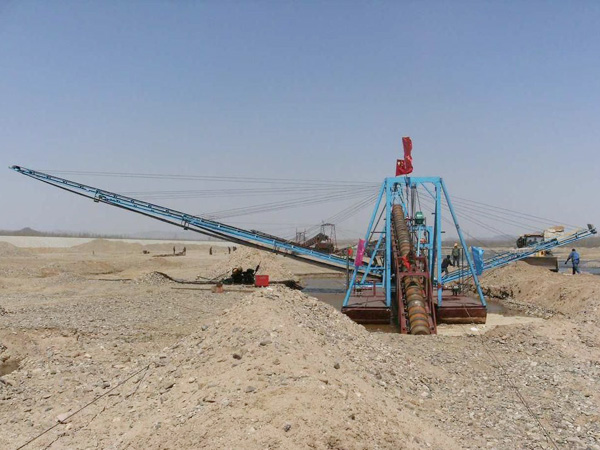 挖沙船,即采掘沙石、沙礦的機械設(shè)備工具,一般為電動遷移式或柴油機械動力式。船體采用拼裝式箱型結(jié)構(gòu)。配有挖掘裝置、篩選裝置、提升裝置、傳送裝置等。通過電機驅(qū)動挖斗上料,石塊通過篩選傳由輸送帶傳出,沙子由輸送帶傳到指定地點。